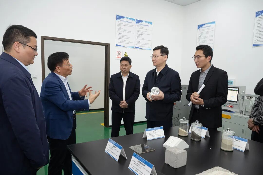 在中科固废资源利用公司,阚保勇走进实验室、中试示范线,了解锂尾砂和尾渣综合利用技术研发、中试情况,勉励企业发挥自身优势,强化技术攻关,加速成果转化,更好赋能锂电产业发展。