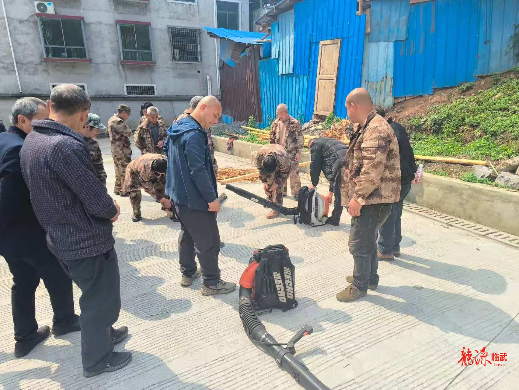 现场教学风力灭火机的组装、启动与操作技巧。(通讯员:肖博仁 王磊)